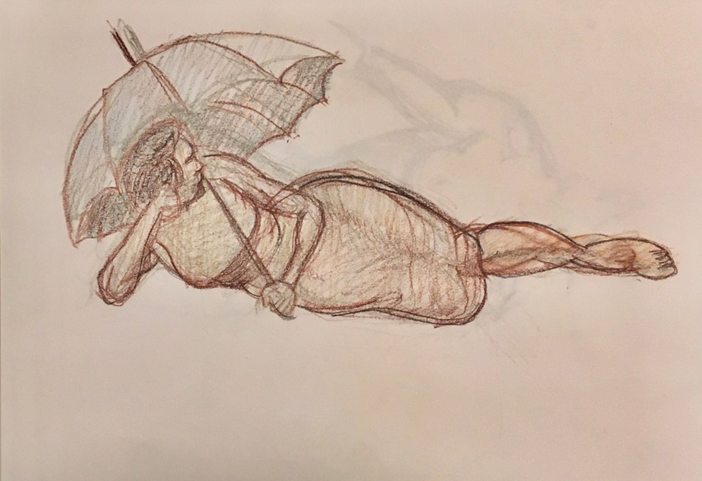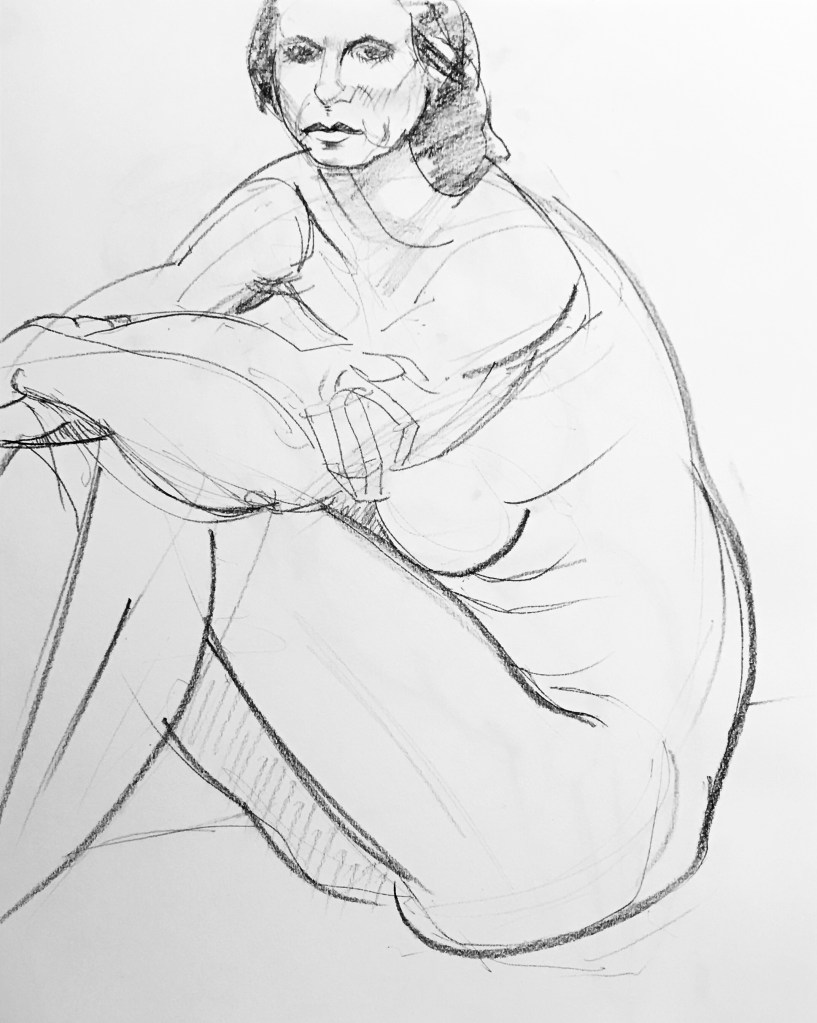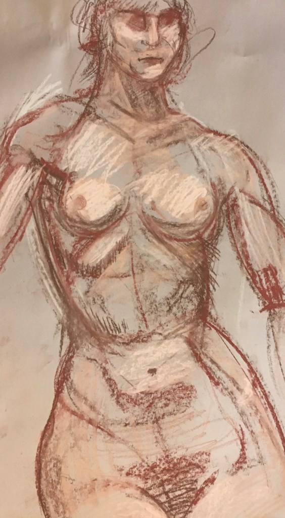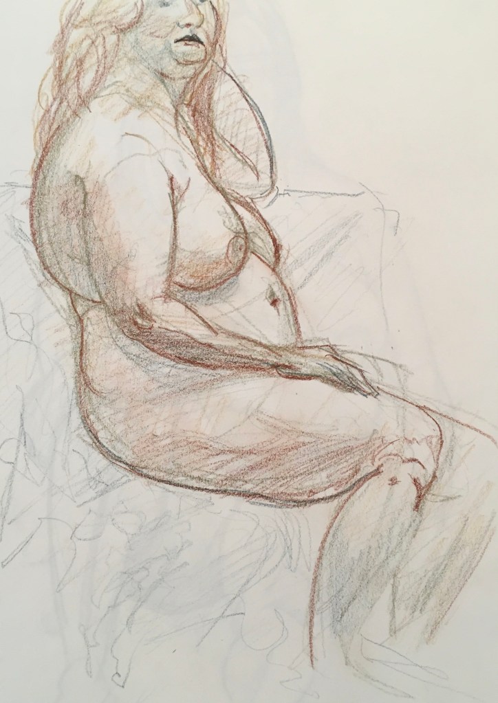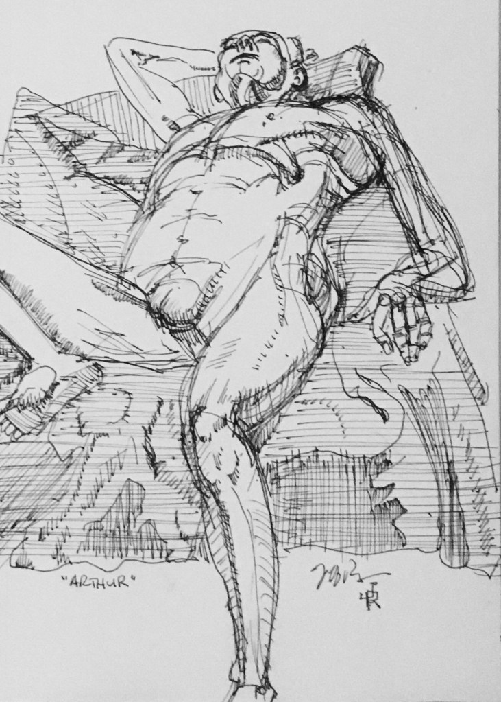 It was an honor to once again this Sunday have Arthur model for us. Unfortunately, it was an off day for me. The pose was complicated, which I enjoy, but I was apparently not up to the task. There is a lack of a sense of three dimensional volume and many scratchy, searching lines that don’t really add up to more than scribbly evidence of careless uncertainty.