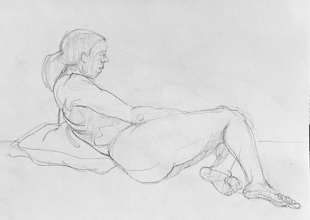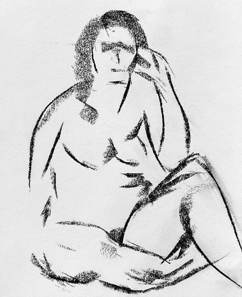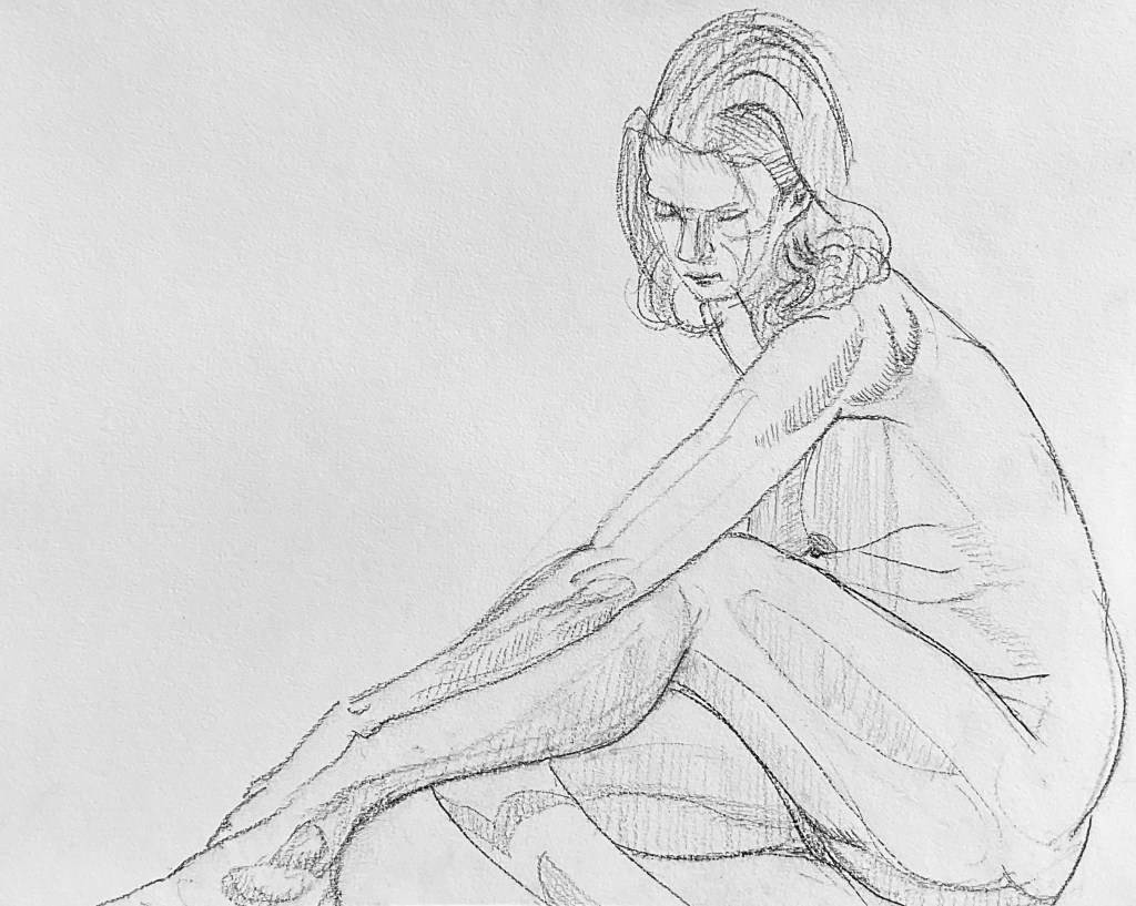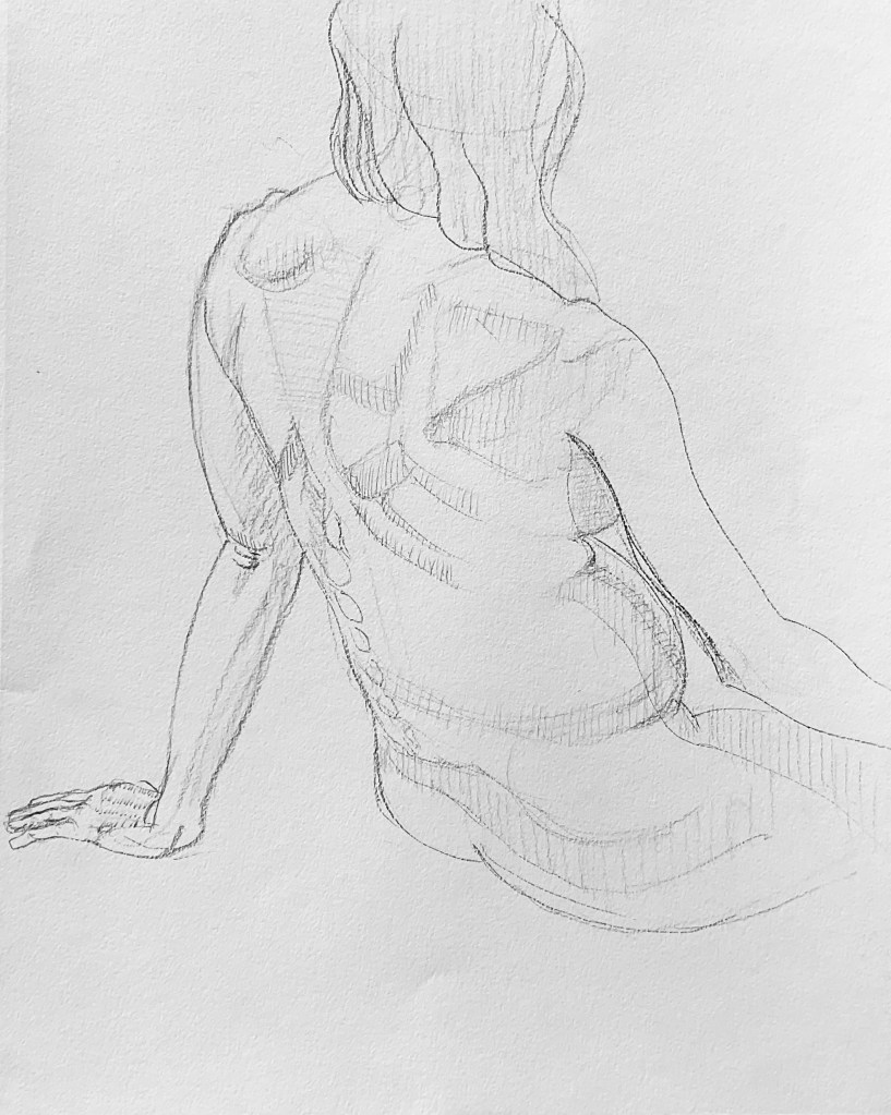 With a new model, I tend to go really slowly as I try to familiarize myself with the unique details of their anatomy. Sure, there’s a way to do an anonymous, expressive figure, never mind the details; but I want to be able to conjure an authentic likeness. I want to understand the true anatomy.