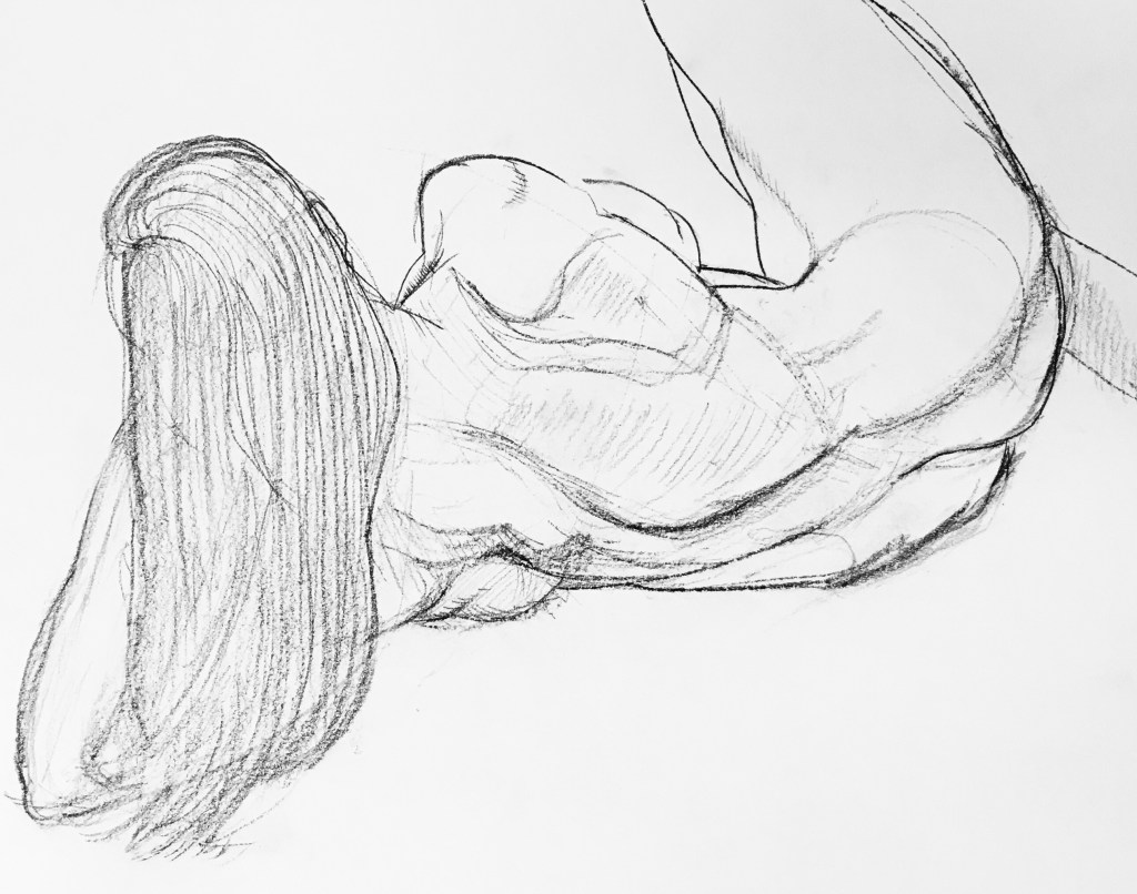 The blunt instrument that is the wax crayon offers none of the precision provided by the well-pointed pencil. It forces you to skip getting lost in the details, which is great for gesture. Of course, the crayon can be sharpened to somewhat of a point, but that point won’t last long. I took Pratt’s recommendation for pointing them with the “jumbo” sharpener inside the Faber Castell Grip Trio sharpener.