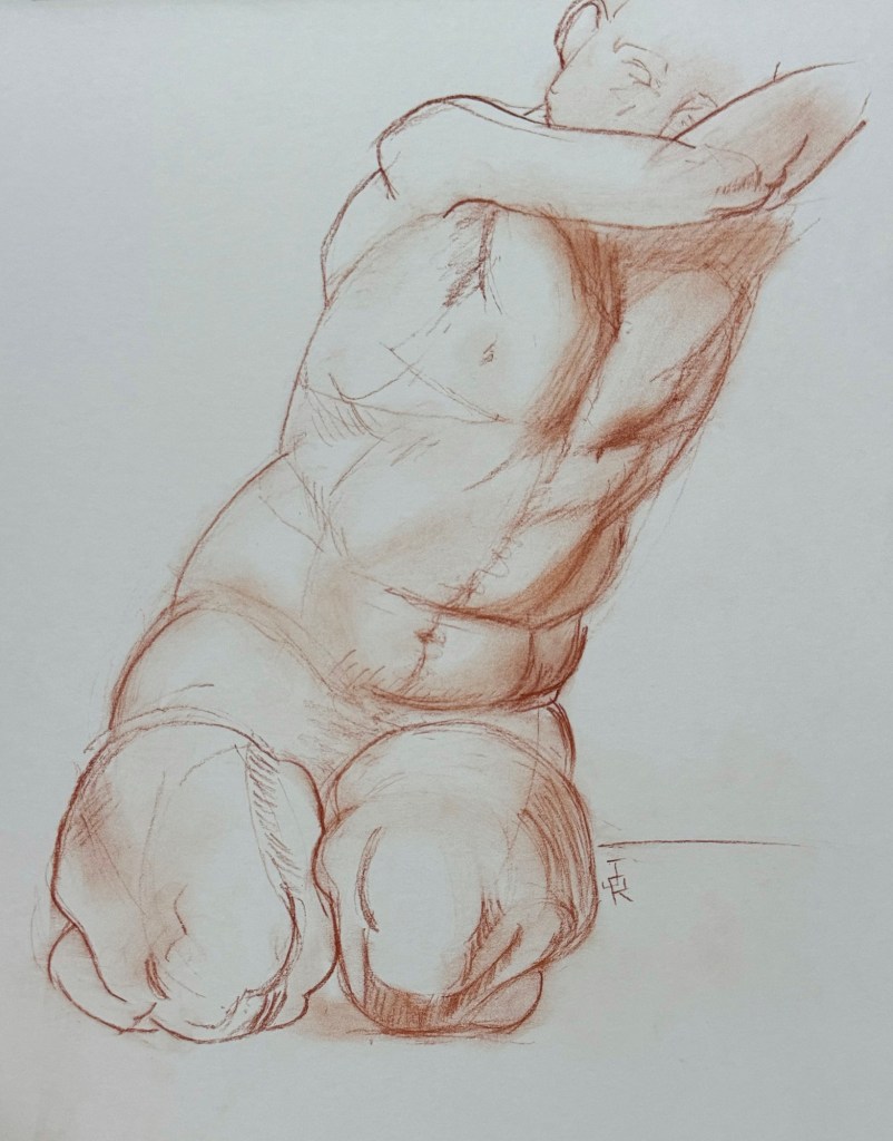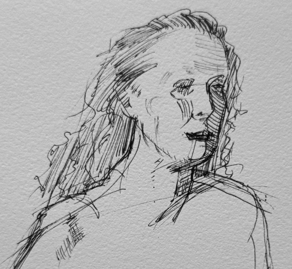 I opened the image on an iPad and set it on the ground about four feet away from me and sketched freehand. I got a pretty good likeness but thought I was a little bit off. Something as simple and unnoticeable as rotating the sketch a degree or two can throw things off.