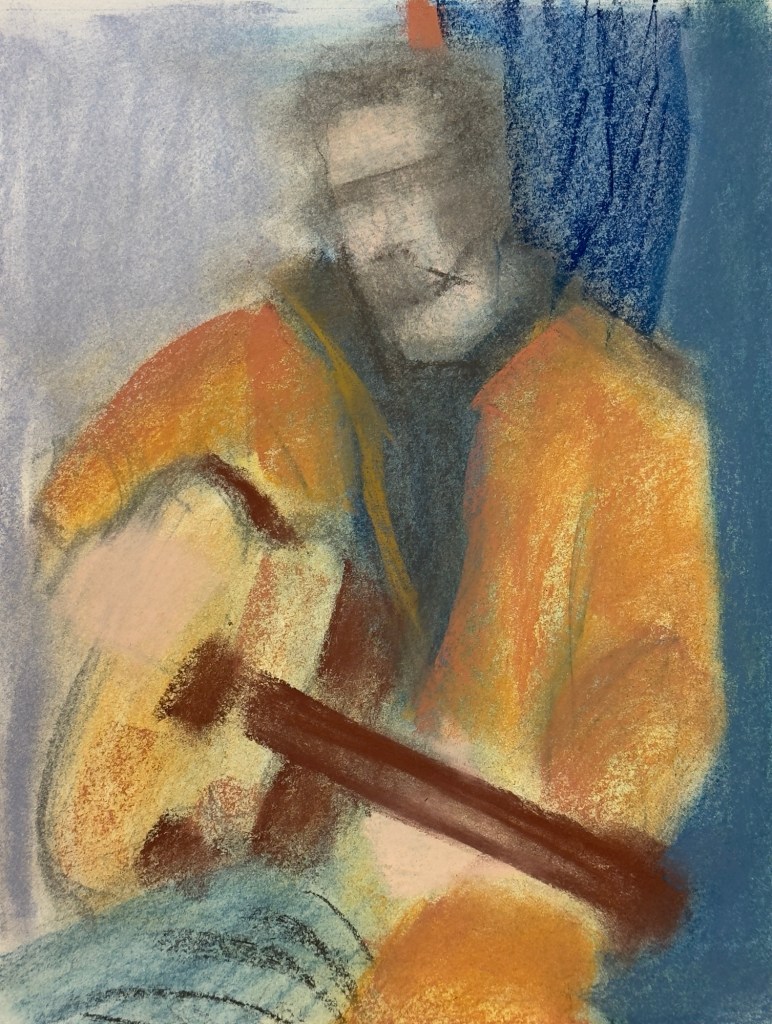 I’m preparing work for an upcoming show featuring local performers. Today’s work was investigating a new drawing surface and testing some new Jack Richeson pastels I acquired recently.